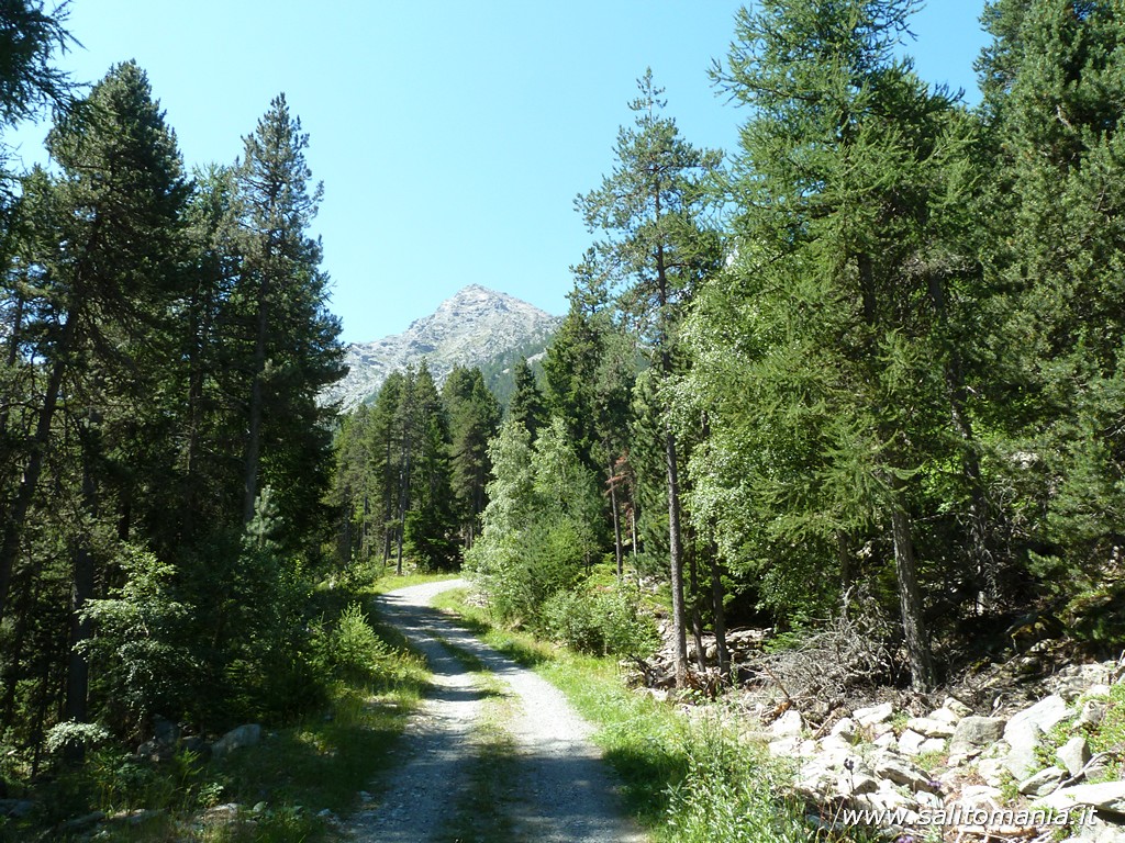 Brevi tratti scorrevoli mi illudono e lasciano il posto ad altri molto dissestati, altamente trialistici: saggiamente proseguo a piedi, non è il caso di fare i supereroi in un luogo così poco frequentato, e comunque l’ambiente boschivo è talmente bello e fresco che è quasi piacevole portarsi a spasso la bici. Dopo lunghi tratti di portage ed un avventuroso attraversamento di un torrente su una instabile passerella crollata si sbuca sulla interpoderale proveniente da Mont Ros: mai ho agognato così tanto di percorrere una strada sterrata!