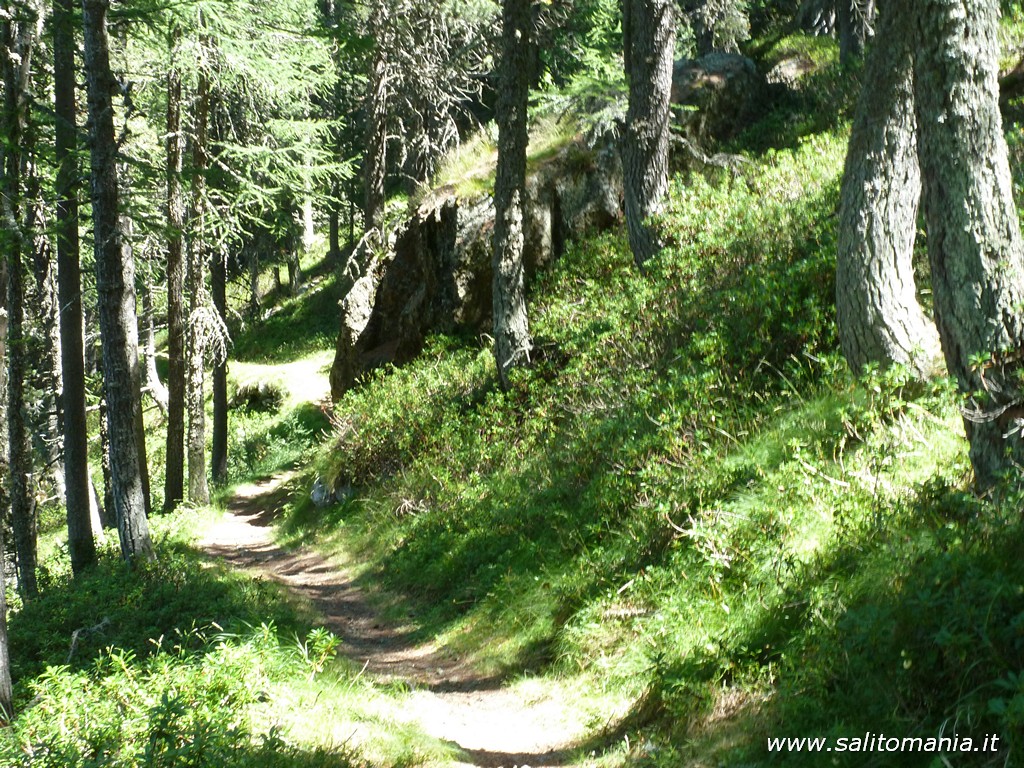 Appena prima dell’alpeggio sulla sinistra una palina segnaletica indica la direzione da prendere: il sentiero per Bellecombe è il N.3, inizialmente ciclabile e pianeggiante, poi le pendenze costringono a scendere dalla bici per un breve tratto sino a raggiungere quota 1850 metri. Da qui si inizia a scendere: siamo all’interno di un bellissimo bosco, ed il sentiero nella prima parte è semplicemente favoloso e guidabilissimo: in breve si raggiunge l’alpeggio abbandonato di Salè, dove comincia una sezione più problematica a causa del fondo molto sconnesso e dell’erba alta che impedisce una visuale ottimale degli ostacoli, occorre prestare massima attenzione per evitare improvvisi impuntamenti dell’anteriore.