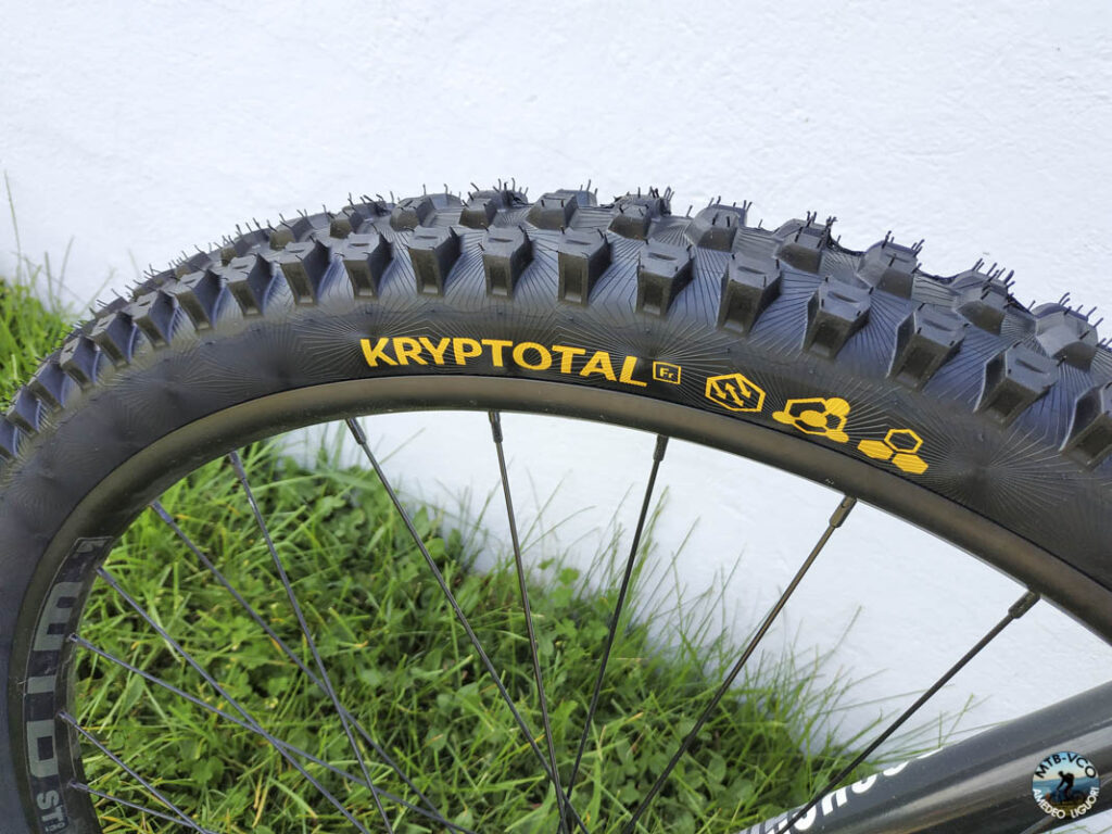 Proposto per un utilizzo su terreni misti, il modello Kryptotal qui in prova abbiamo già avuto modo di conoscerlo approfonditamente in un precedente test. Viene declinato nella versione Fr per l’anteriore e Re per il posteriore. Non è un caso che quest’ultima non sia stata dotata della mescola SuperSoft, essendo senz’altro più necessaria all’anteriore, ma della mescola Soft, che offre comunque un equilibrio ideale tra presa e resistenza al rotolamento.