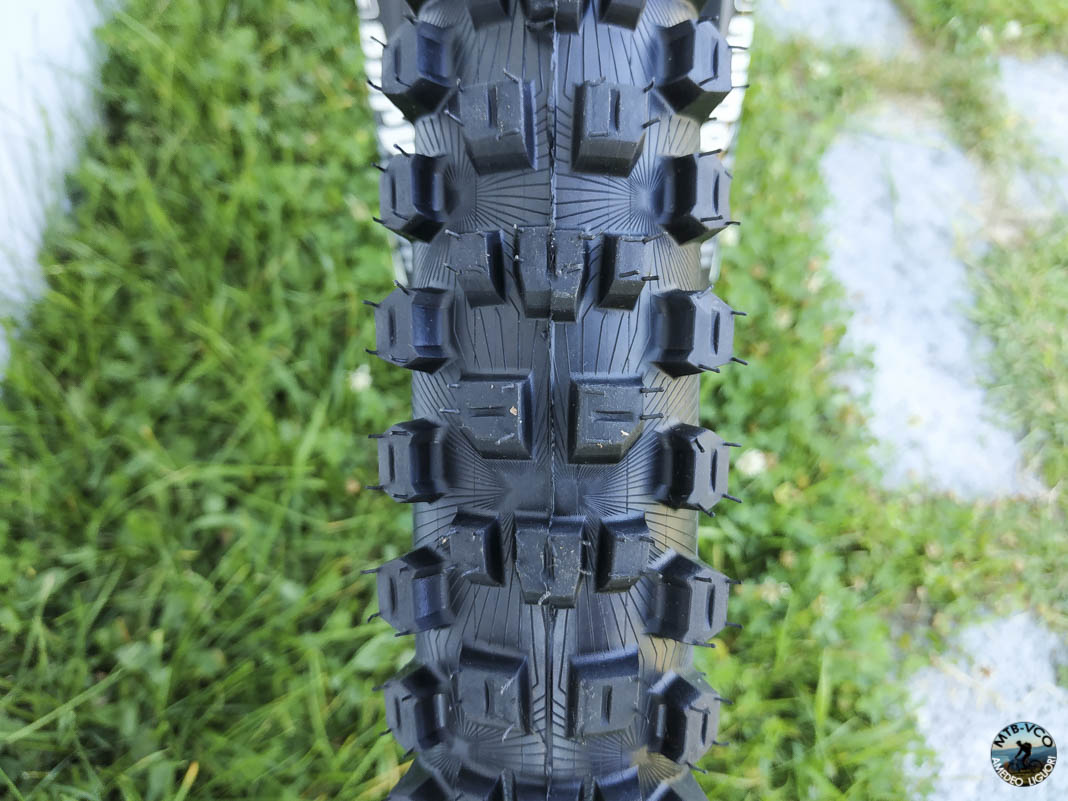 Il Kryptotal lo avevo già testato in passato, constatando la sua polivalenza un po’ in ogni ambito. Grazie, infatti, ai tasselli centrali angolati nel punto di attacco al terreno, lo pneumatico mostra una buona scorrevolezza, in questo modo si riesce a mantenere una buona velocità nei rilanci, anche nelle sezioni più tecniche.