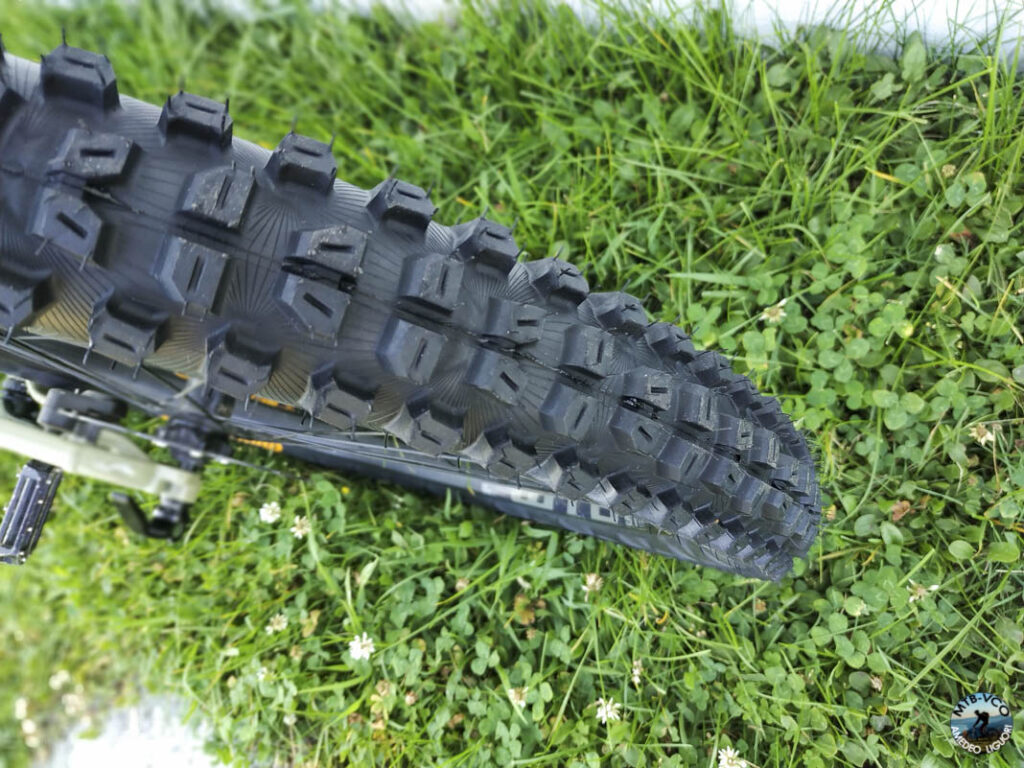 I due pneumatici in prova hanno la carcassa Enduro, con tre strati di materiale sotto il battistrada e l’aggiunta di uno strato Apex per una maggiore durata e protezione da tagli e forature.