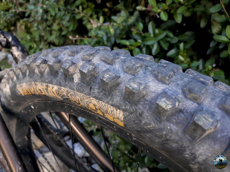 Il montaggio è stato inaspettatamente veloce e senza difficoltà, con inserimento della solita mousse e lattice su cerchi con canale da 32 mm. Il fianco dei copertoni è rimasto quello che abbiamo conosciuto con il modello in test precedente, quindi con una trama in rilievo abbastanza ruvida e di discreta altezza. Le gomme sono state utilizzate per oltre 1500 km su tanti terreni diversi e la sensazione è quella positiva di avere il set giusto per la quasi totalità delle uscite. Il “quasi” è dovuto al fatto che non esiste la gomma perfetta ma quella preferita da mettere dietro o davanti, con i suoi limiti. La soddisfazione deriva dal fatto di avvertire il controllo della bici su percorsi particolarmente difficili perchè ovviamente su sentieri facili tutte le gomme vanno bene.