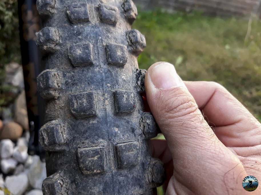 La domanda più frequente riguarda la durata e la resistenza dei tasselli in mescola morbida su una eBike, in quanto la maggior parte dei biker guarda alla resa nel tempo di un determinato componente con la volontà che duri il più possibile in maniera ragionevole… insomma che il costo sia accettabile in proporzione alla resa. A conclusione del test sono molto soddisfatto e posso dire che sinceramente non mi sarei aspettato una durata così elevata in rapporto ai chilometri percorsi: in quasi 1600 km il consumo dei tasselli tra la gomma anteriore e la posteriore è molto simile, indice che sono state davvero utilizzate mescole differenti e che sono ben bilanciate in quanto i tasselli sono evidentemente consumati, abbassati, ma ancora in buone condizioni nonostante siano scesi di quasi il 50%; un utente medio incomincerebbe a cercare un nuovo set dopo aver percorso ancora 200 km. Risultato davvero stupefacente considerato l’utilizzo davvero intenso e gravoso che hanno sopportato queste gomme.