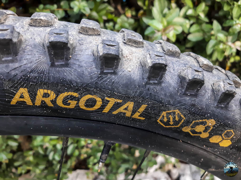 Da quando hanno fatto la comparsa sul mercato le gomme da enduro, quindi con una carcassa che si collochi a metà strada tra la delicatezza e leggerezza delle gomme da XC e quelle pesanti e “blindate” da DH, i produttori hanno spesso faticato a mettere sul mercato un prodotto robusto il giusto ma con la mescola più morbida a disposizione, riservata solo alle gomme da discesa pura. Questo portava a un bivio sulla scelta dello pneumatico anteriore: comprare una gomma più robusta, pesante e larga più del necessario pur di avere il massimo grip oppure scendere al compromesso di una mescola intermedia per avere un alleggerimento di peso ma sacrificare parzialmente la tenuta? Finalmente Continental ha esaudito il desiderio di molti biker attenti a questo dettaglio, portando la mescola super soft sulla carcassa da enduro. Già durante il test delle Argotal da 2.6″ in mescola soft, sono stato molto sorpreso dall’eccezionale presa e fantasticavo su come potesse essere la famigerata mescola super soft appannaggio solo della carcassa da DH. A distanza di circa 2 anni, Continental ci ha mandato un Argotal 29×2.4″ in carcassa Enduro e mescola Super Soft e una Kryptotal-Re 27.5×2.4″ sempre in carcassa Enduro e mescola Soft. I pesi rilevati sono stati una ulteriore sorpresa: solo 1.2 kg per l’anteriore e 1.1 kg per il posteriore. Altra novità interessante è che Continental ha portato sulle gomme da bici il codice DOT presente sulle gomme delle moto e delle automobili, quattro cifre che indicano settimana e anno di produzione e che aiutano a capire se una gomma è di recente produzione (e quindi molto elastica e performante) o è rimasta sullo scaffale per diversi mesi e quindi risulterà più dura e delicata.