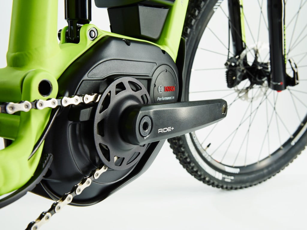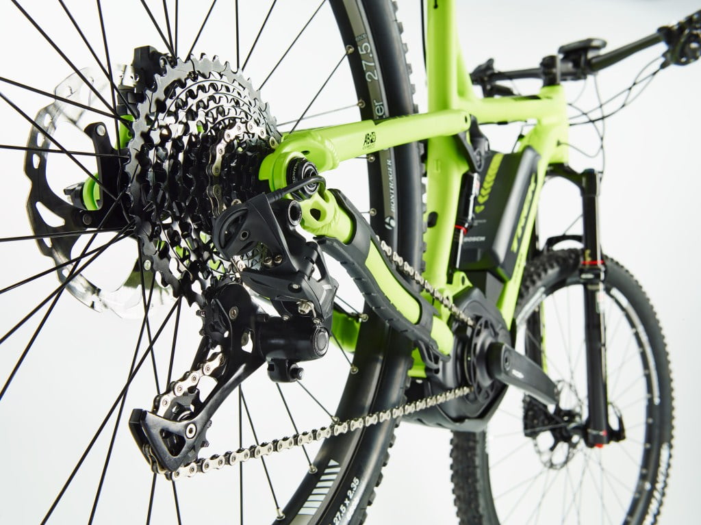 Costruita su un telaio in alluminio Alpha Premium Platinum, con un’escursione di 120 mm alla ruota posteriore e ruote da 27.5″, la Powerfly+ FS era equipaggiata con un motore Bosch Performance da 250 W di potenza.