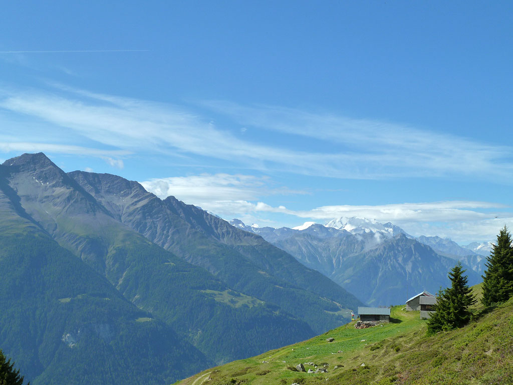 Si parte da Lax mt 1032, dopo aver parcheggiato nei pressi della stazione ferroviaria, uno dei pochi posti a parcheggio libero: si sale subito con decisione, prendendo una delle tante stradine asfaltate che riportano le indicazioni per Kuhboden, Laxeralp. Ben presto l’asfalto lascia il posto ad una strada forestale dal fondo perfetto, che attraversa bei boschi di conifere prima di uscire allo scoperto nei pressi di Laxeralp. Il colpo d’occhio sulla vallata è notevole, così come sulle lontane cime dei Mischabel e sulle ben note montagne al confine con l’Italia: Rossa, Cervandone, Helsenhorn, tutte lì in ordine anche se con una prospettiva visiva insolita.