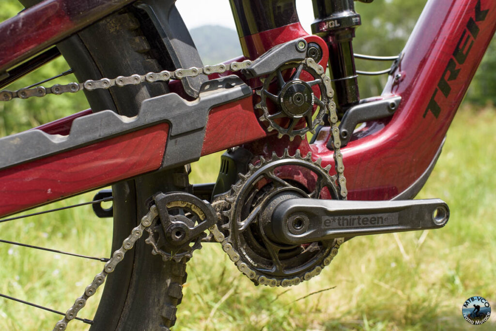 A differenza di altri modelli Trek, qui non troviamo il Mino Link per variare alcune quote geometriche, tuttavia a favore della personalizzazione la Slash+ è dotata di un chip, posizionato nel piede dell’ammortizzatore, che consente di variare il rapporto di leva. Per chi invece volesse variare l’angolo di sterzo o piantone di più o meno un grado, lasciando inalterata l’altezza del movimento centrale, Trek mette a disposizione (vendute separatamente) le calotte della serie sterzo regolabili.