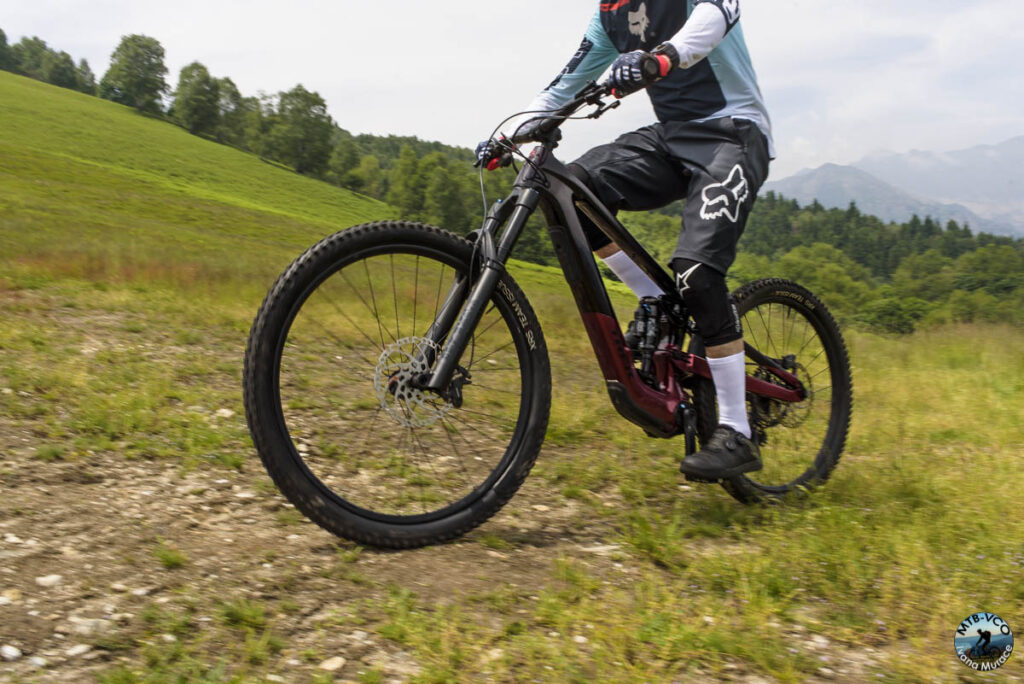 Infatti in fase di rilancio sembra quasi di guidare un mezzo da enduro senza motore, considerato anche che la sospensione posteriore ha offerto il supporto che desideravo trovare a metà escursione. L’aumento dell’interasse, inoltre, stabilizza molto il mezzo alle velocità più elevate e nelle sezioni più ripide, lasciando il resto alle ottime sospensioni. Le ruote forse non sono delle più robuste, ma fanno il loro dovere se il biker non è dei più pesanti ed aggressivi.