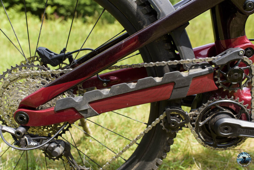 Gli spazi a disposizione sono generosi e si apprezza la presenza delle gomme già convertite in tubeless così come la possibilità di personalizzare la progressività della sospensione posteriore. I biker più aggressivi e di alta statura potrebbero trovare leggermente stretto il manubrio, per cui in fase di acquisto potranno eventualmente farselo cambiare dal negoziante, sebbene io lo sconsiglierei perché un manubrio più largo andrebbe a svantaggio della reattività del mezzo, considerata la massa complessiva. Si fa apprezzare, infine, il generoso batticatena.