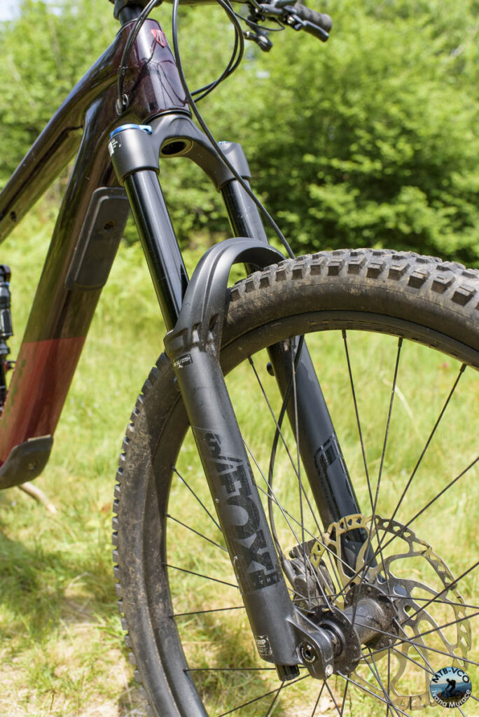 La Slash+ al momento viene proposta in due soli allestimenti, di cui quella in test rappresenta la versione più economica, se così si può dire, considerando l’allestimento adottato. La forcella è la massiccia Fox 38 Rhythm, che consente le regolazioni della compressione alle basse velocità e del ritorno.