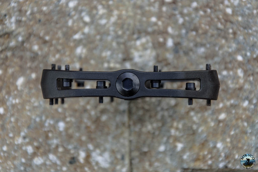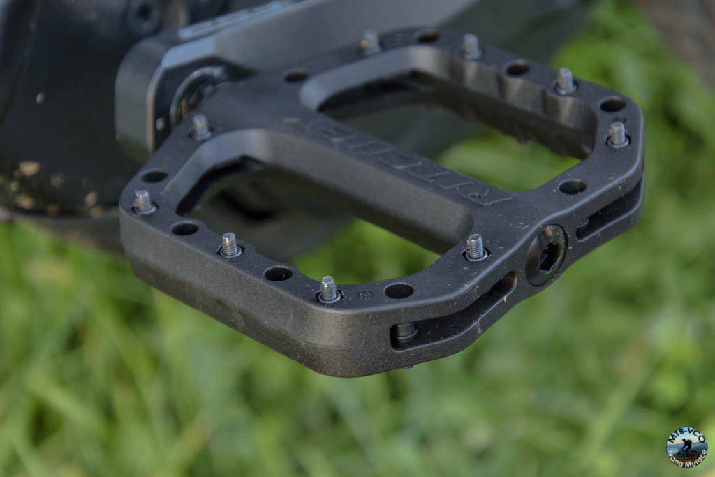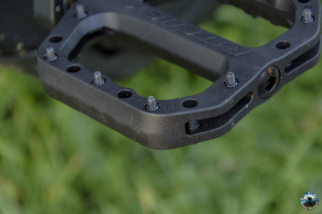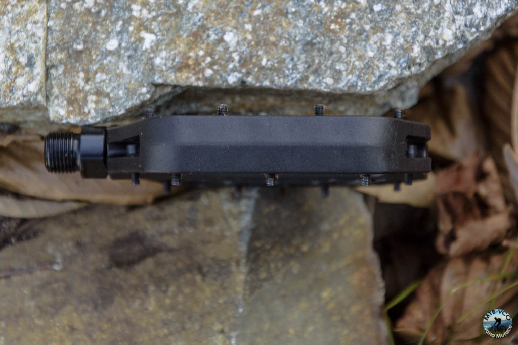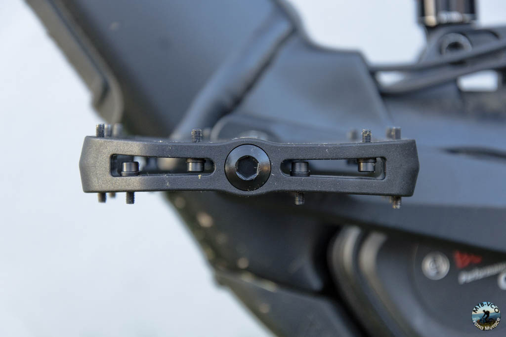 Nonostante il peso contenuto, i pedali offrono una generosa superficie di appoggio. I pin sono distribuiti in maniera uniforme lungo il perimetro e mi hanno offerto un’ottima presa con le scarpe anche in presenza di bagnato o su fondi particolarmente dissestati. Inoltre, il disegno leggermente concavo della superficie consente un appoggio confortevole, soprattutto sulle lunghe distanze, favorendo una maggiore aderenza della scarpa sui pin, anche utilizzando quelle dotate di suole meno morbide.