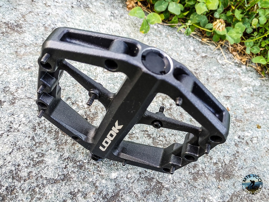 Sia in fase di spinta che di appoggio statico, la differenza di quota dei pin permette un ottimo controllo della bici e l’altezza contenuta del perno aiuta a limitare il contatto con le sporgenze naturali del terreno. Il ponti di raccordo sono rimasti invariati e consentono un ampio scarico di fango nel caso ci si trovi a mettere il piede per terra con il terreno bagnato. Il resto della struttura si è rivelata robusta come il modello precedente e resistente agli impatti.