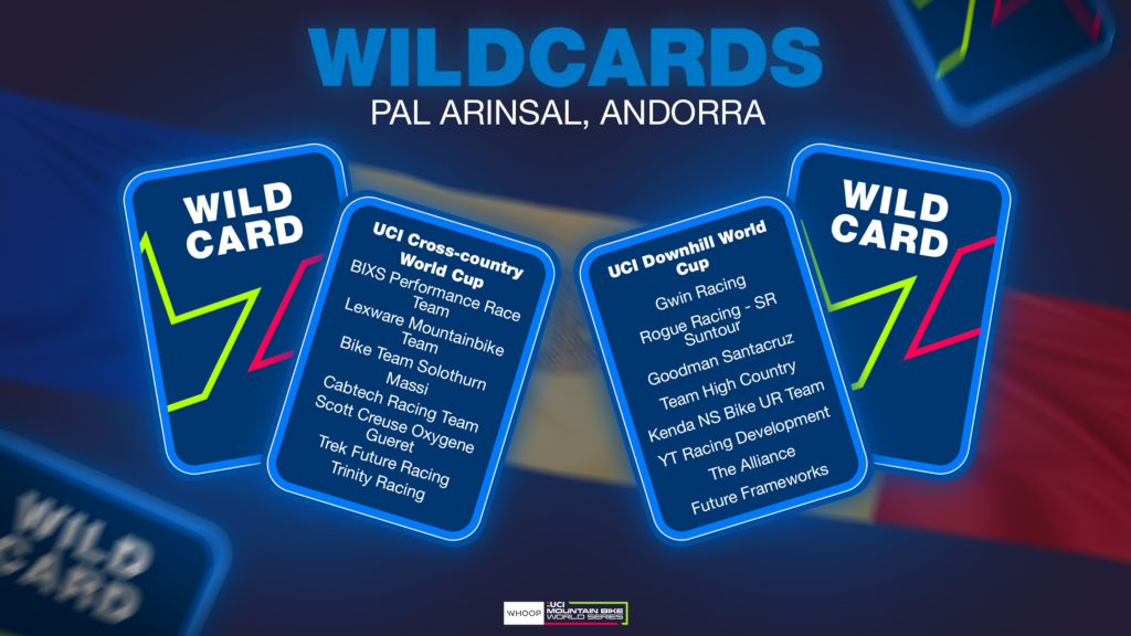 L’Union Cycliste Internationale (UCI) e la Warner Bros. Discovery (WBD) Sports possono confermare che 16 squadre wildcard – otto cross-country e otto downhill – sono state selezionate per l’11° round della WHOOP UCI Mountain Bike World Series a Pal Arinsal (Andorra) dal 10 al 13 luglio.