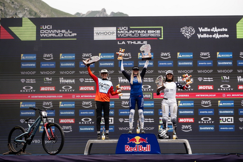 Ostgaard è stata battuta al secondo posto sia in Val di Sole – Trentino che a Saalfelden Leogang – Salisburghese. Tuttavia, l’atleta del Canyon CLLCTV Factory Team non si è lasciata sfuggire l’occasione a La Thuile – Valle d’Aosta e ha sfruttato la sua forza sul percorso costruito per conquistare la prima vittoria in Coppa del Mondo UCI di downhill della sua giovane carriera. La campionessa nazionale americana Matilda Melton (Commencal Schwalbe By Les Orres) si è presentata all’evento al terzo posto assoluto, dopo una stagione costante che l’ha vista salire sul podio anche a Loudenvielle-Peyragudes (Francia). Melton ha stabilito un tempo di riferimento iniziale di 4:10.98, dopo aver fatto segnare il miglior tempo in ogni settore e 13,5 secondi più veloce dei concorrenti che l’hanno preceduta.