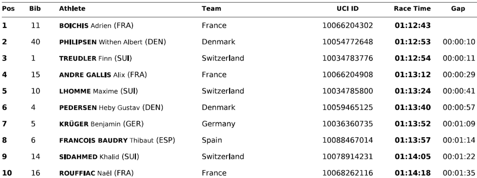 9 17 LANTER Fynn (SUI) Switzerland 10061158076 01:06:14 00:01:53 7