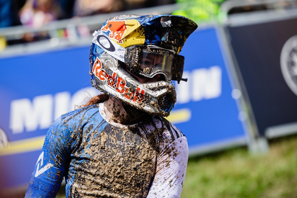 Cabirou aveva bisogno del ripescaggio per qualificarsi per le finali di Les Gets, in Alta Savoia, ma lo ha sfruttato al meglio, sfruttando al massimo le condizioni che aveva trovato, essendo una delle prime atlete Elite a partire dalla rampa prima che la corsa venisse sconvolta dalle concorrenti successive. Nonostante il sole si facesse lentamente strada lungo la valle, l’asciugatura è stata compensata dalle cicliste che hanno dovuto lottare nel fango ogni minuto e solo Tahnée Seagrave (Orbea/FMD Racing) è riuscita ad avvicinarsi seriamente alla francese prima delle manche finali.