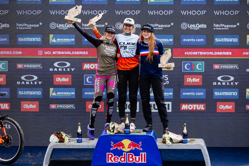 Zierl ha ottenuto una vittoria al cardiopalma in una gara femminile Junior che ha causato numerose perdite, la più importante delle quali è stata quella di Aletha Ostgaard (Canyon CLLCTV Factory Team) nella penultima manche. Zierl era la più veloce con 22 secondi di vantaggio, ma Ostgaard sembrava pronta a scalzarla subito da quel gradino, andando più veloce a ogni intermedio. Ma i suoi tre secondi sono svaniti quando ha sbagliato strada negli ultimi salti, deviando a sinistra di un cancelletto e costringendo l’americana a scendere per rimettersi in carreggiata, scivolando al secondo posto.