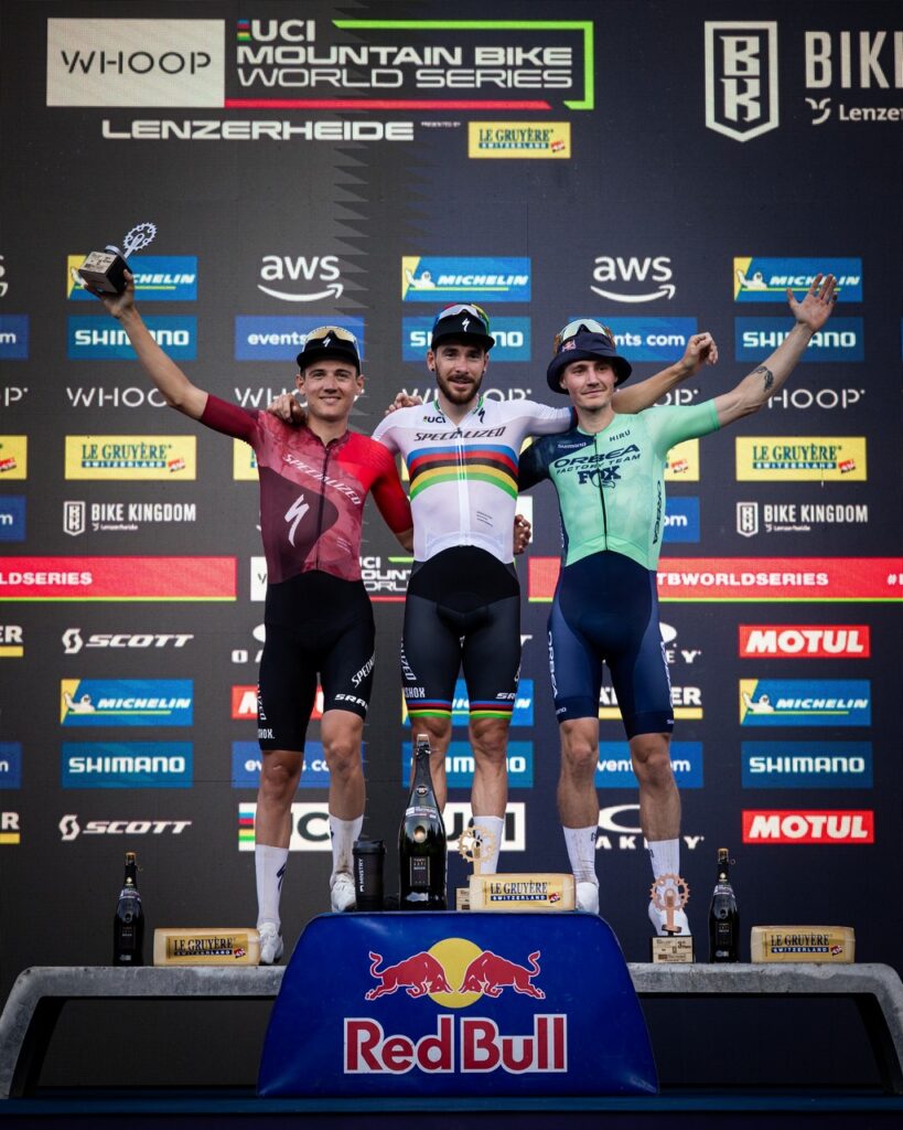 Il neo-campione del mondo UCI XCO U23 ha dominato entrambe le serie quest’anno, e il risultato non è mai stato davvero in dubbio. Un gruppo di tre composto da Paul Schel (Lexware Mountainbike Team), Heby Gustav Pedersen (Wilier-Vittoria Factory Team) e Rens Teunissen van Manen (KMC Ridley MTB Racing Team) ha fatto del suo meglio per raggiungerlo, ma non è riuscito a tenere il passo dello svizzero. Alla fine, Schel ha superato Pedersen al secondo posto, mentre Teunissen van Manen è scivolato al sesto posto.