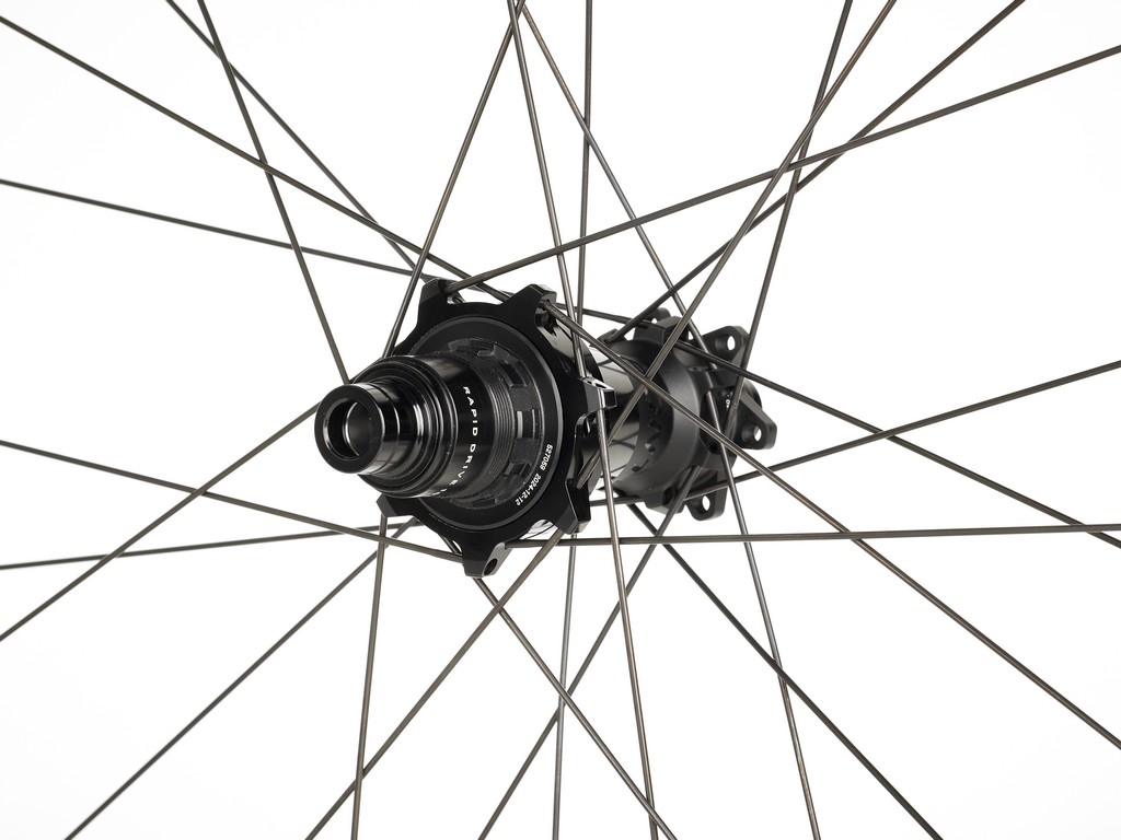 La struttura a raggi disassata migliora gli angoli dei raggi, aumentando la rigidità laterale del cerchio e rendendo la guida più stabile, soprattutto in curva, sia in fase di accelerazione che di frenata, con carico elevato. Questo sistema di raggi e mozzi è disponibile sia sui modelli Line Pro 30 in carbonio che sui modelli Line Comp 30 in alluminio.