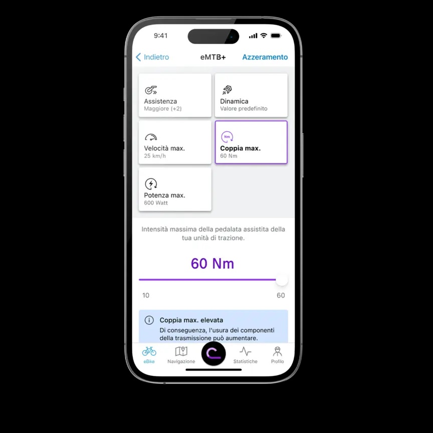 Ciascun viaggio è diverso. Ciascun percorso è unico. Perciò questo aggiornamento dell’app eBike Flow ti aiuta a rendere la tua esperienza in eBike ancora più personalizzata: ora non solo puoi incrementare i valori delle prestazioni della tua Performance Line SX (BDU314Y), ma anche personalizzare le schermate del tuo Kiox 400C in base alle tue preferenze. Usi percorsi importati nell’app eBike Flow? Ora puoi seguirli con precisione, senza reindirizzamento automatico. Se hai eShift sulla tua eBike con il sistema intelligente, otterrai subito molte nuove funzioni. E se qualcosa non va con l’eBike, un messaggio d’errore appare ora come codice QR sul tuo display. Scansionalo per arrivare ancora prima all’Help Center e alla soluzione giusta.