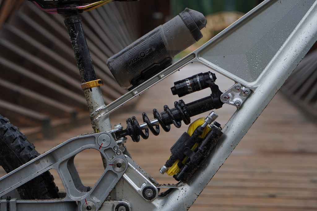 Ancora più innovativa la presenza di un mass damper custom nascosto all’interno del tubo sterzo. Ispirato a soluzioni già testate in Coppa del Mondo downhill (come sulla bici di Jackson Goldstone), il mass damper riduce vibrazioni e chatter, rendendo – secondo Haller – la forcella “notevolmente più sensibile entro certi range”.