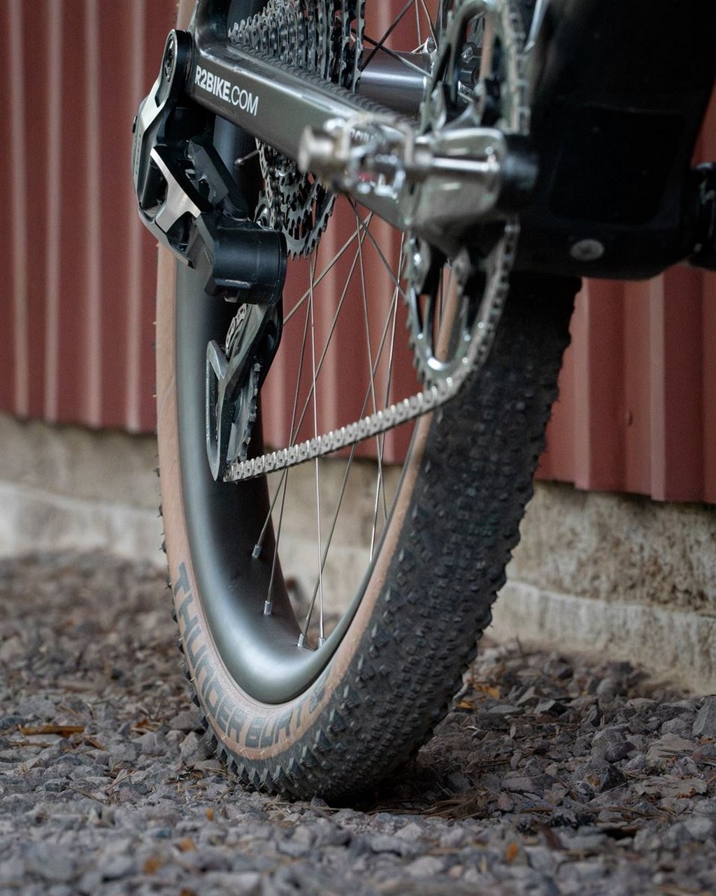 Ruote e pneumatici: Dangerholm ha optato per cerchi in carbonio personalizzati con canale interno da 40 mm, una larghezza che permette di montare pneumatici più larghi a pressioni basse per maggiore comfort e grip. I mozzi sono Tune, noti per la loro leggerezza, e gli pneumatici Schwalbe Thunder Burt da 2.1″ offrono un equilibrio ideale tra scorrevolezza e trazione su sterrato.